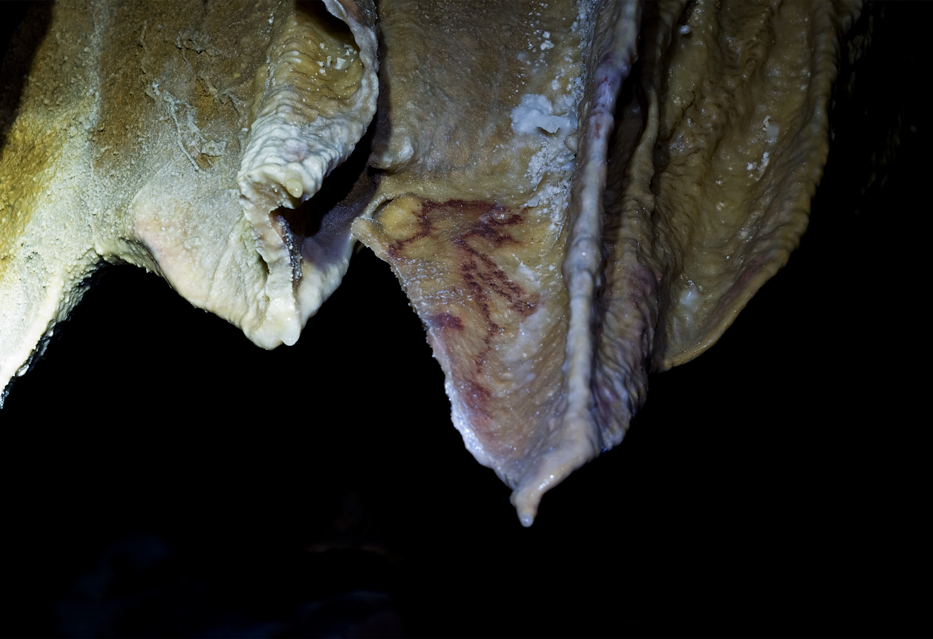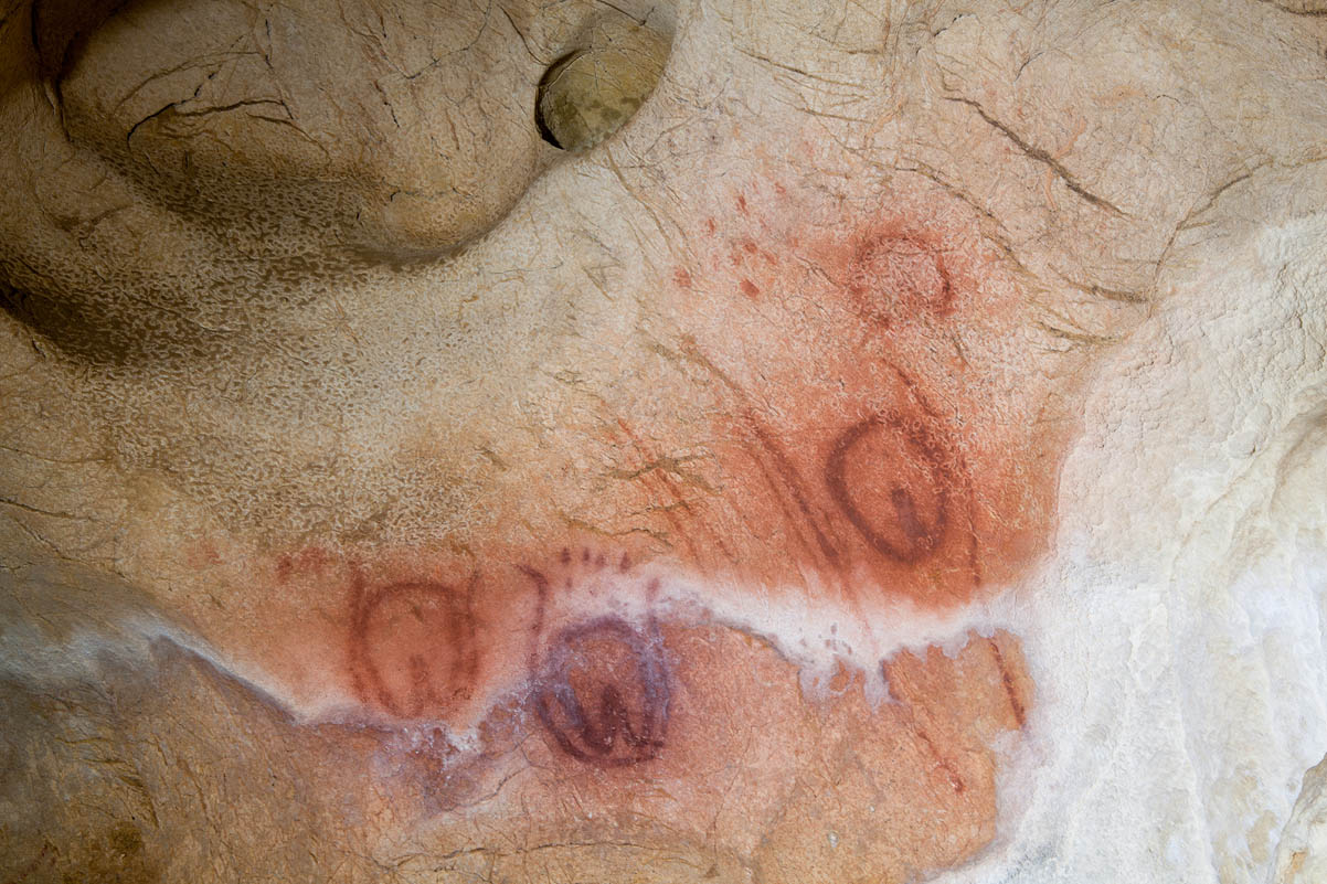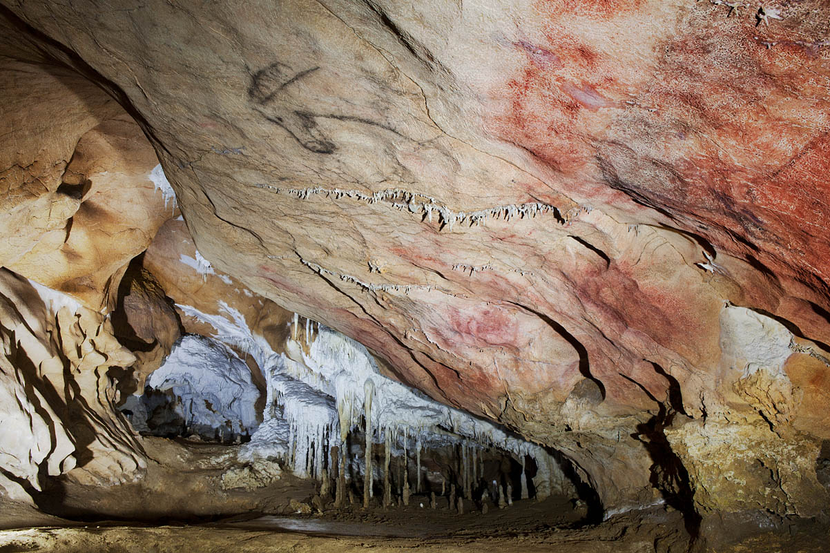 A lo llargo de tola cueva consérvense evidencies d’arte premagdaleniense, en conxuntos como’l Camarín de les Vulves, el Panel de la Mano o la Galería de los Antropomorfos, y ta esplorada y decorada hasta nes zones más fondes dende los momentos iniciales del Paleolíticu superior.