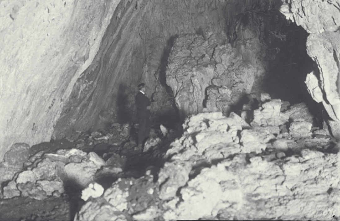 Les primeres prospecciones arqueolóxiques na cueva fáenles Juan de Dios de la Rada y Delgado y Juan Arturo de Malibrán y Autet en 1870, como parte d’una comisión científica que llegó a Asturies pa pañar oxetos arqueolóxicos que pudieren formar parte de la colección del Muséu Arqueolóxicu Nacional. Pocos años más tarde l’inxenieru Justo del Castillo y Quintana fai una segunda excavación, que permite documentar restos d’un importante concheru, que relaciona coles ocupaciones prehistóriques de la cueva. Yá a primeros del sieglu XX reconozla Eduardo Hernández-Pacheco y Estevan en 1912, y excávenla él y Paul Wernert en 1915; también el Conde de la Vega del Sella y Hugo Obermaier en 1916, aludiendo en dambos casos a la esistencia d’un depósitu arqueolóxicu del Magdaleniense inferior.