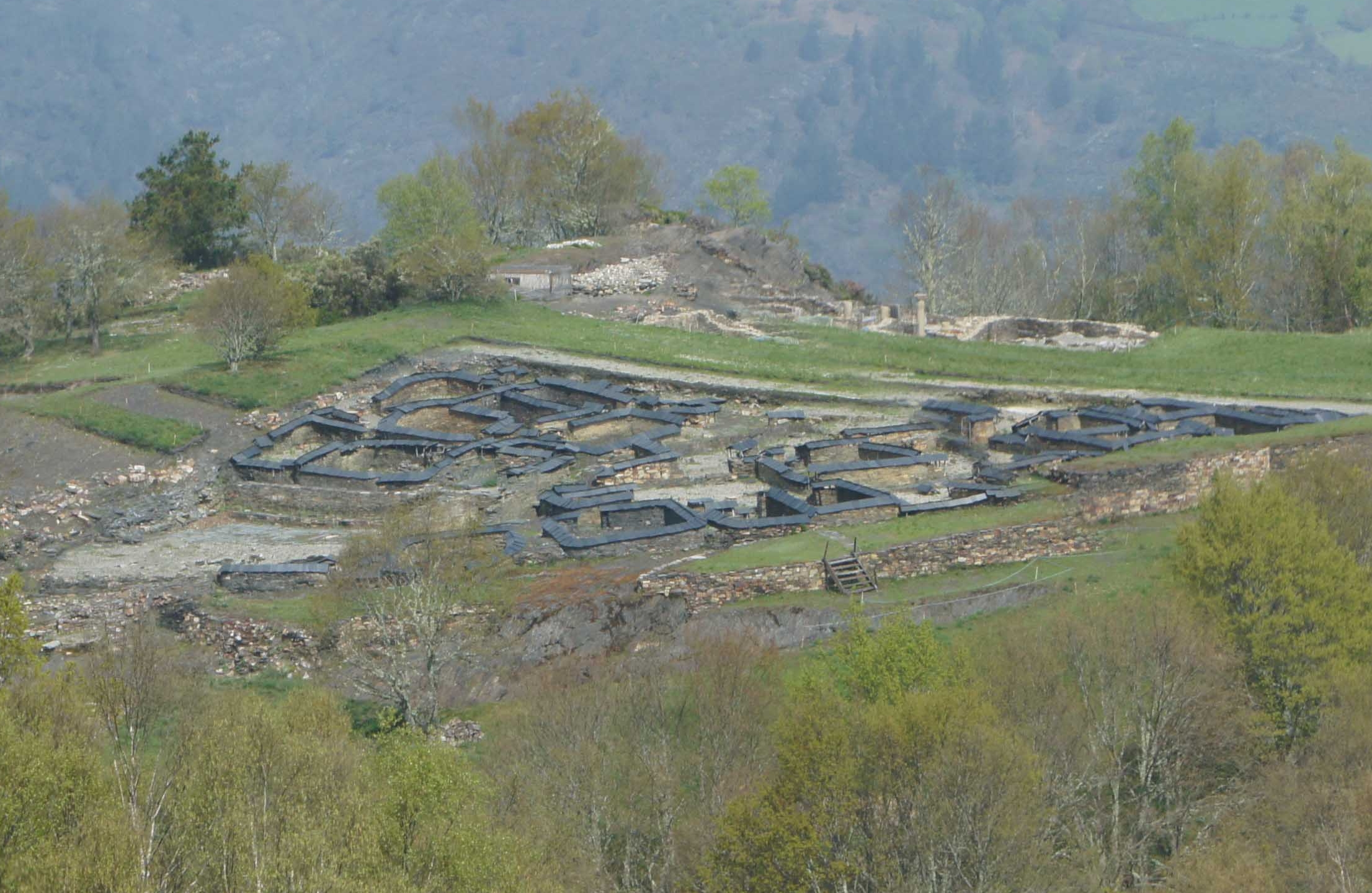 Actualmente hay excavada una superficie de 5500 m² donde se distinguen tres sectores: el sector oeste, coincidente con el recinto superior, asociado a la ocupación más antigua del castro; el sector norte, donde se ha localizado una gran casa romana de época altoimperial; y el sector sur, donde se encuentra la mayor parte de las edificaciones del recinto. Predominan edificaciones de planta circular, oblonga y cuadrangular, destacando la presencia de una plaza pavimentada y una estructura termal.