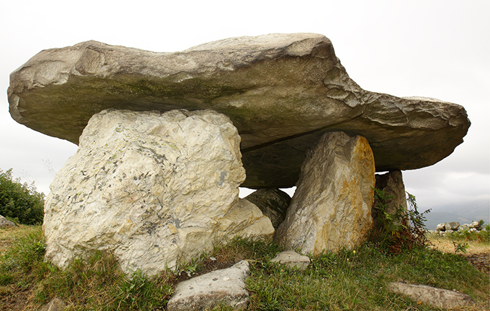 Estas comunidades iniciarán un progresivo cambio hacia modos de vida sedentarios. Comenzará durante el Neolítico un periodo caracterizado por la práctica de la agricultura y el pastoreo. Alrededor del IV milenio AC, hachas pulimentadas, abundancia de microlitos y restos cerámicos señalarán la aparición de tecnologías adaptadas a las nuevas necesidades de producción y consumo. Surge en el paisaje una extensa relación de construcciones funerarias megalíticas, en agrupaciones como La Cobertoria, Monte Areo, Monte Deva o La Sierra Plana de la Borbolla. Se conocen además dólmenes singulares por sus restos decorativos, como el de la capilla de Santa Cruz.